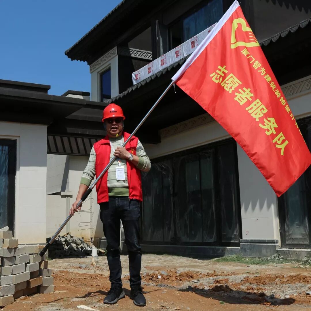 (智为国际董事长杨钢先生与一线施工团队合影留念)